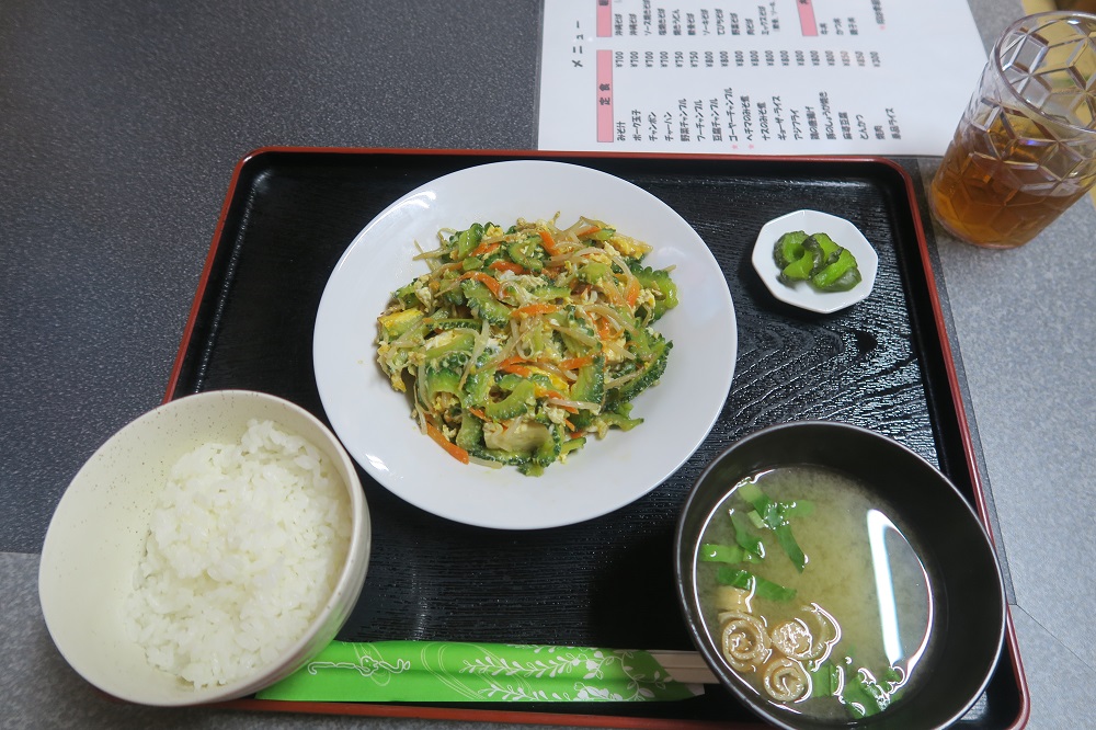 私はゴーヤーチャンプルーをお願いしました。ボリュームが多いと聞いたのでご飯を少なめにしてもらいました。味がしっかりついていておいしかったです。