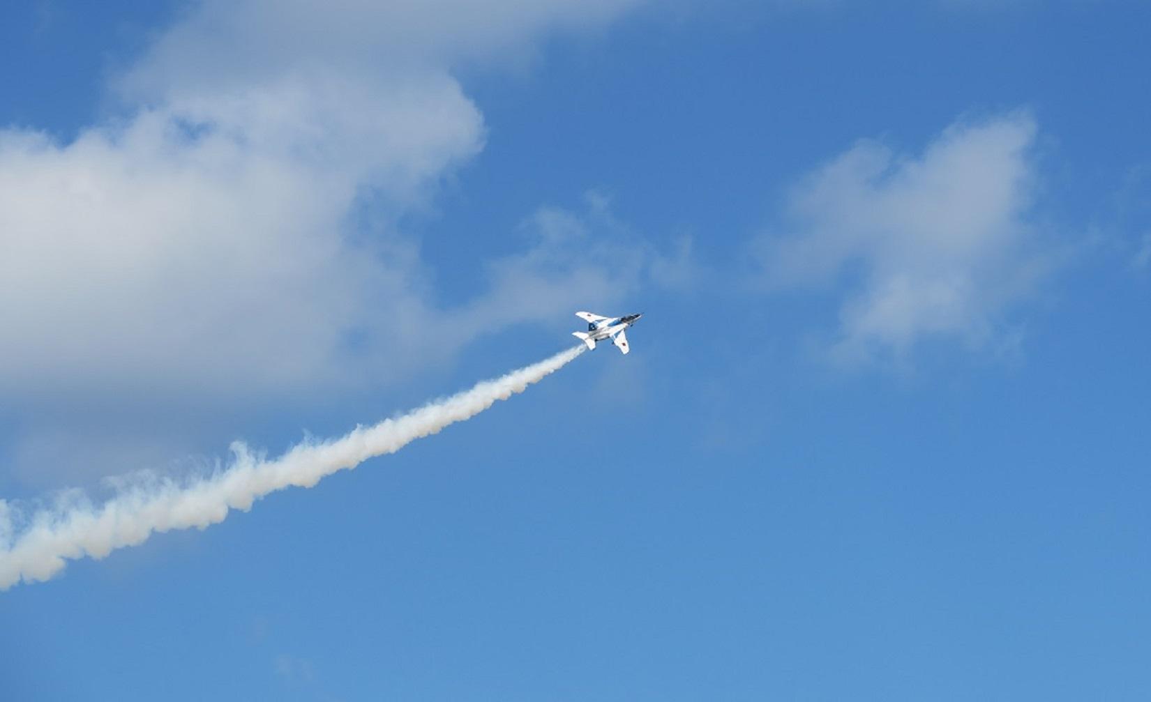 私は何度も「美ら島エアーフェスタ」を見に行っています。これまでもブルーインパルスの展示飛行はありましたが、曲技飛行は沖縄では初めての披露でした。