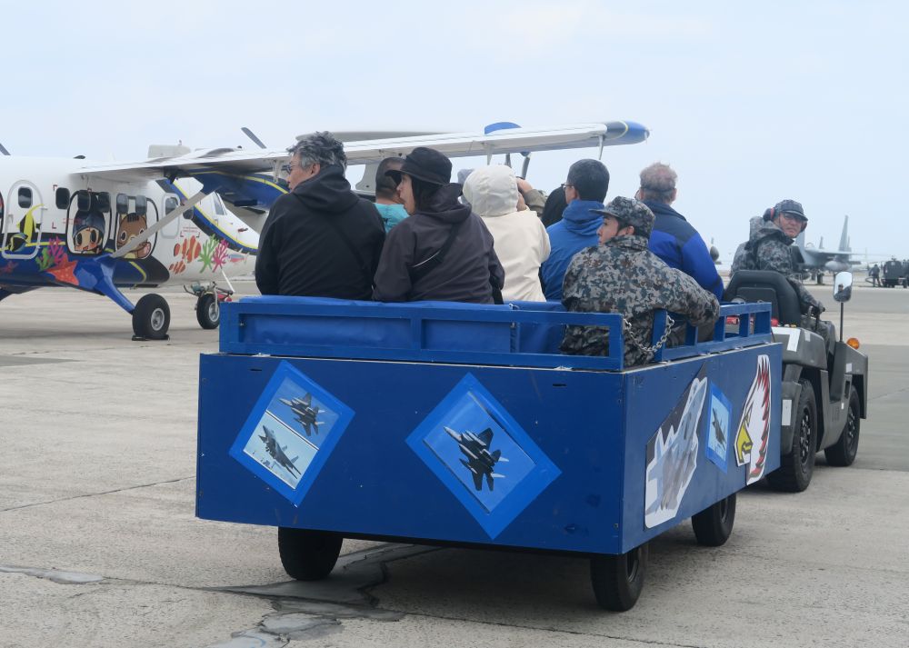 この日は風が強かったので防寒対策をしつつ「展示飛行は大丈夫かしら?」と思っていました。