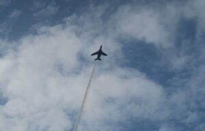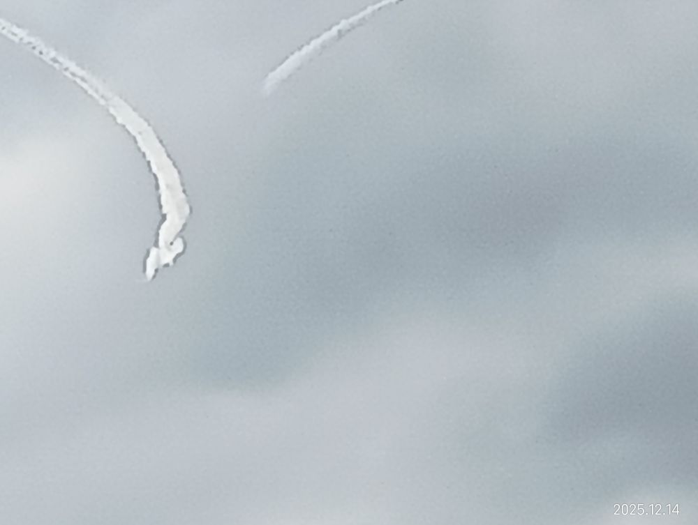白い煙でハートを描いていましたが、曇り空だったので見えづらく、すぐに消えてしまいました。