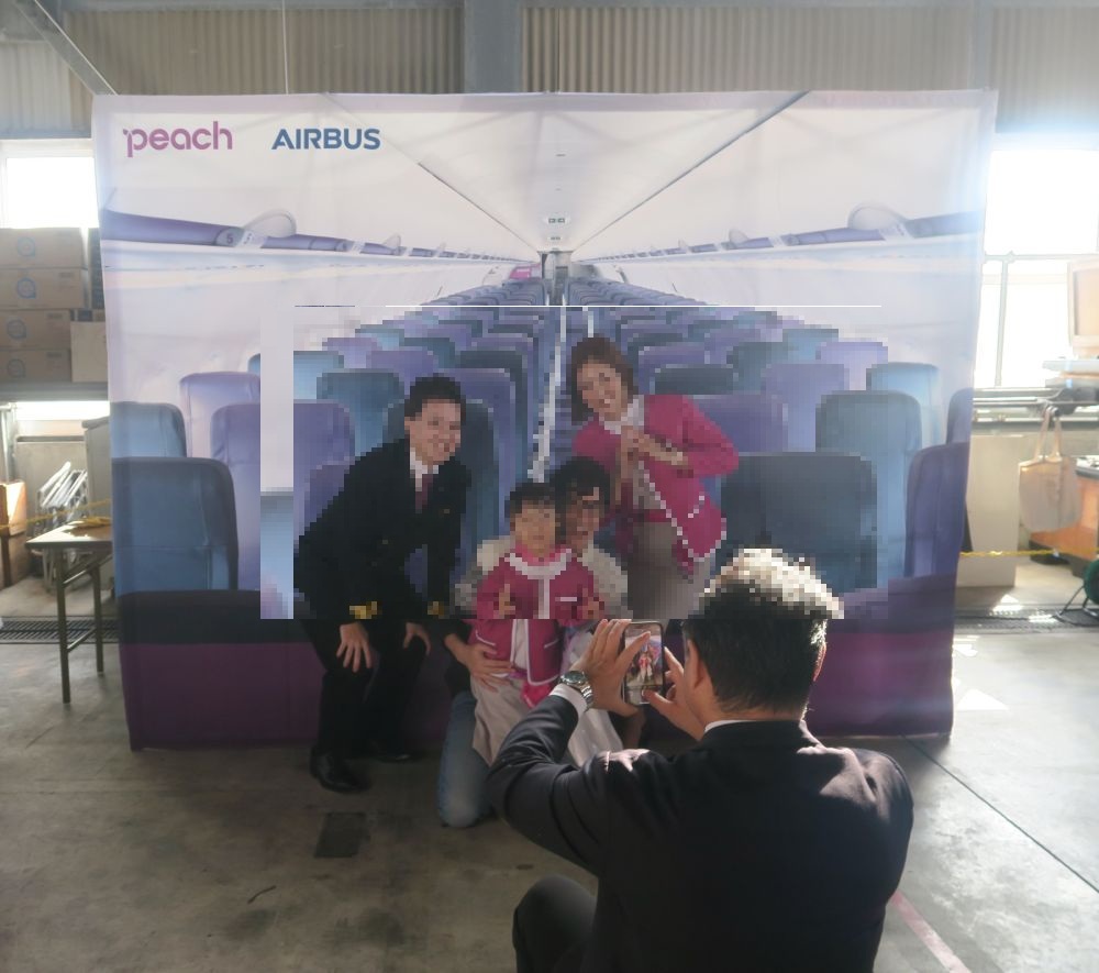 航空会社のブースでは制服を着てなりきり写真が撮れます。