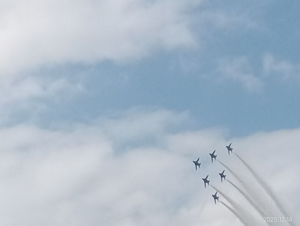 白い煙でハートを描いていましたが、曇り空だったので見えづらく、すぐに消えてしまいました。