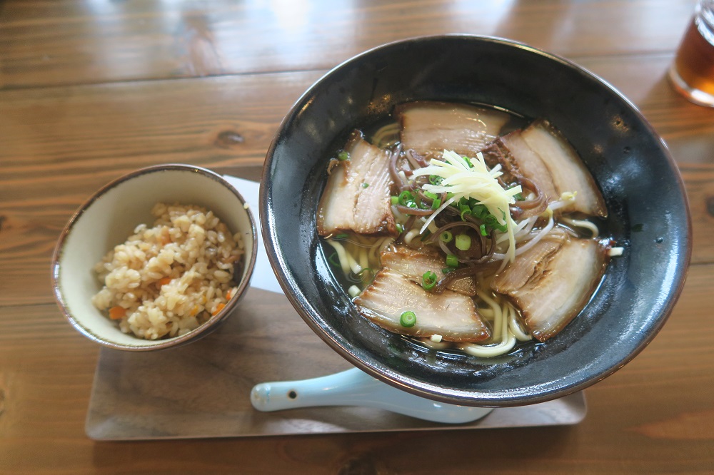 残念ながら私が伺った時には、てびちのから揚げが売り切れていたので、三枚肉そばとじゅーしーをお願いしました。