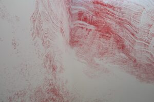 1階からホテル内に入ると、赤い色が印象的な壁があったり、絵画の展示会も開催されていました。押しつけがましくないアートが素敵です。