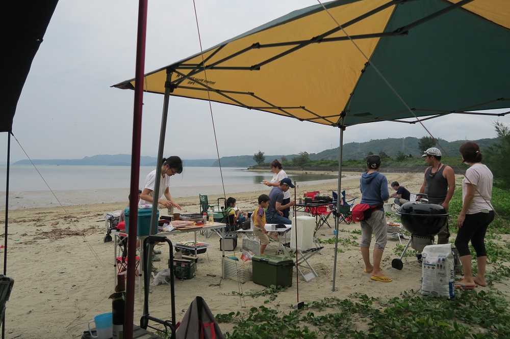 夕方になったので、食事の準備がスタートしました。BBQの道具を持っている方も多く、持ってない方はカセットコンロを交代で使いながら、それぞれが食事を作り、シェアしました。