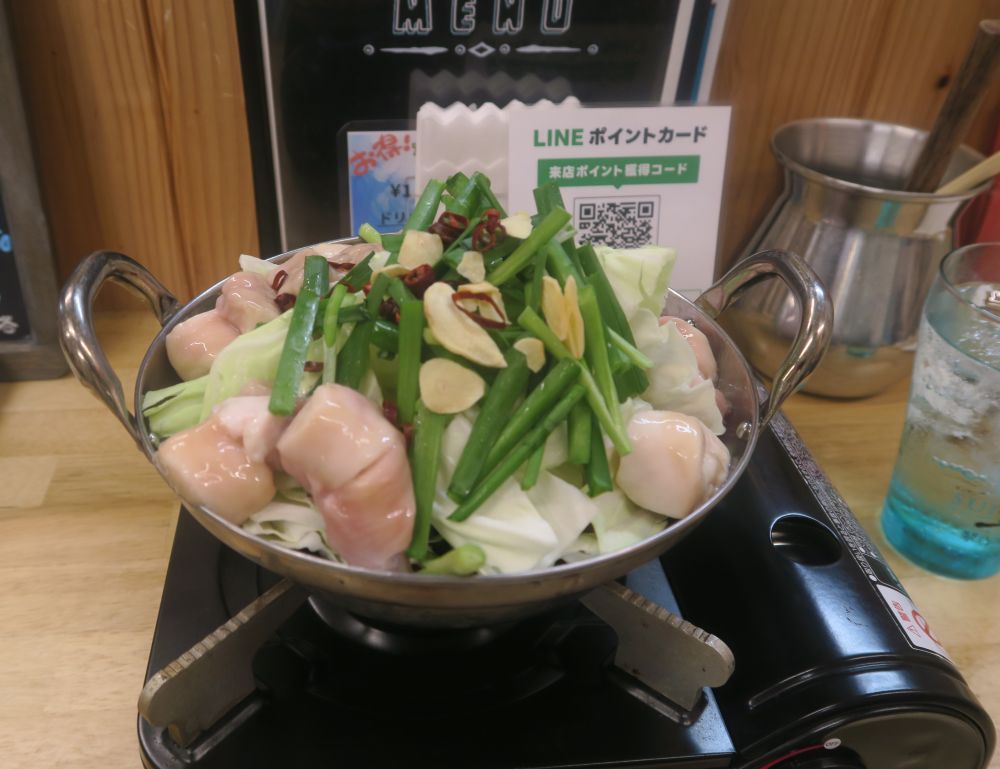 1人分からOKのもつ鍋って嬉しいですね。小さなコンロなのでカウンターの上でも置きやすいです。好きな感じで煮込んで食べます。あつあつハフハフで体の中から温まりました。