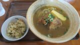 トッピングのお肉は甘辛く煮たソーキと低温調理したチャーシュー。特にしっとりしたチャーシューは他では味わえないおいしさです。