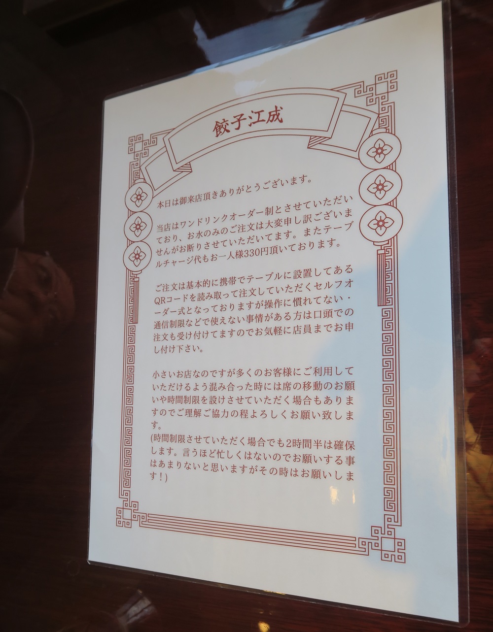 テーブルの上にはこんな案内が書いてあり、最後の「言うほど忙しくないのでお願いすることはあまりないと思いますが、その時はお願いします。」の一文で店主さんのお人柄が垣間見えた気がしてニンマリしました。