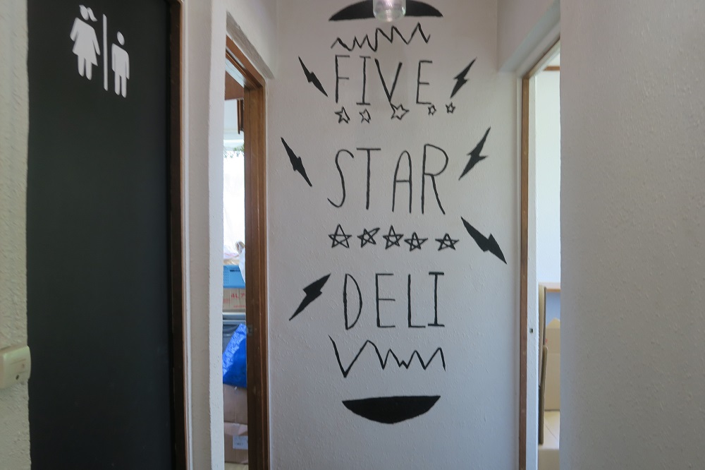 友人の車に便乗しGoogle先生の道案内に従って住宅地をくねくねと進むと、手作り感満載の外壁が印象的な「FIVE STAR DELI」に到着しました。