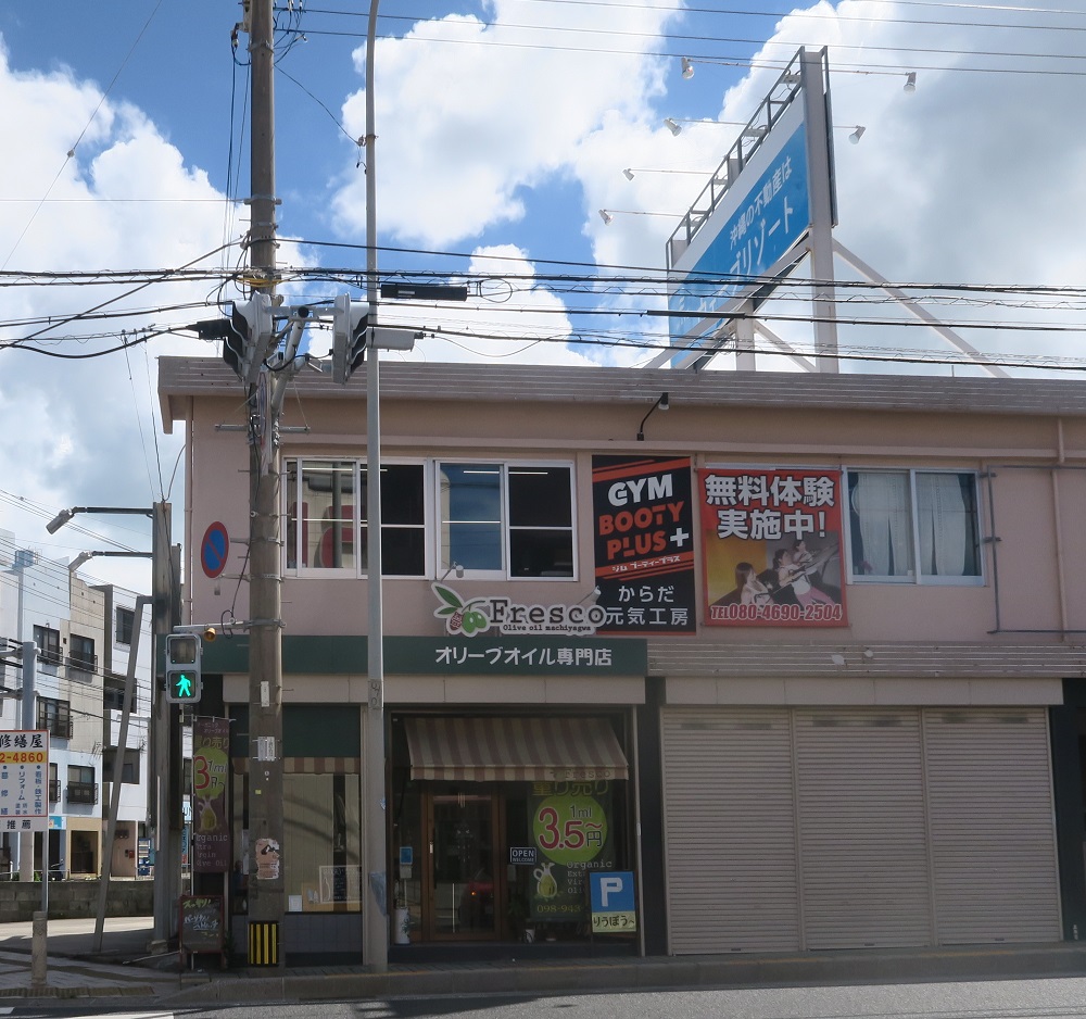 宜野湾市の「FLAP COFFEE」でおいしいモーニングを食べていると、すぐ向かいにオリーブオイル専門店「Fresco」があることがわかったので立ち寄りました。