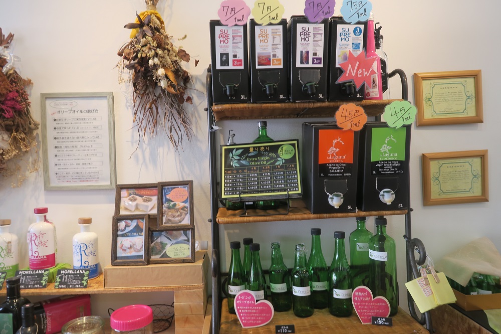 私の家には「オヒブランカ」があるので、別のオリーブオイルがいいなと思っていると計り売りもしていると伺いました。