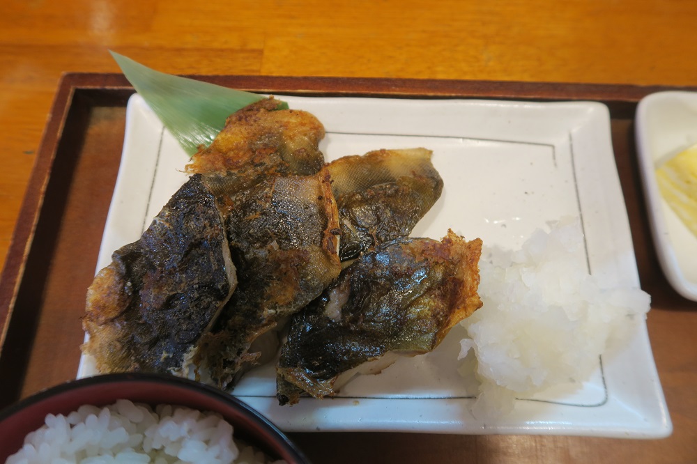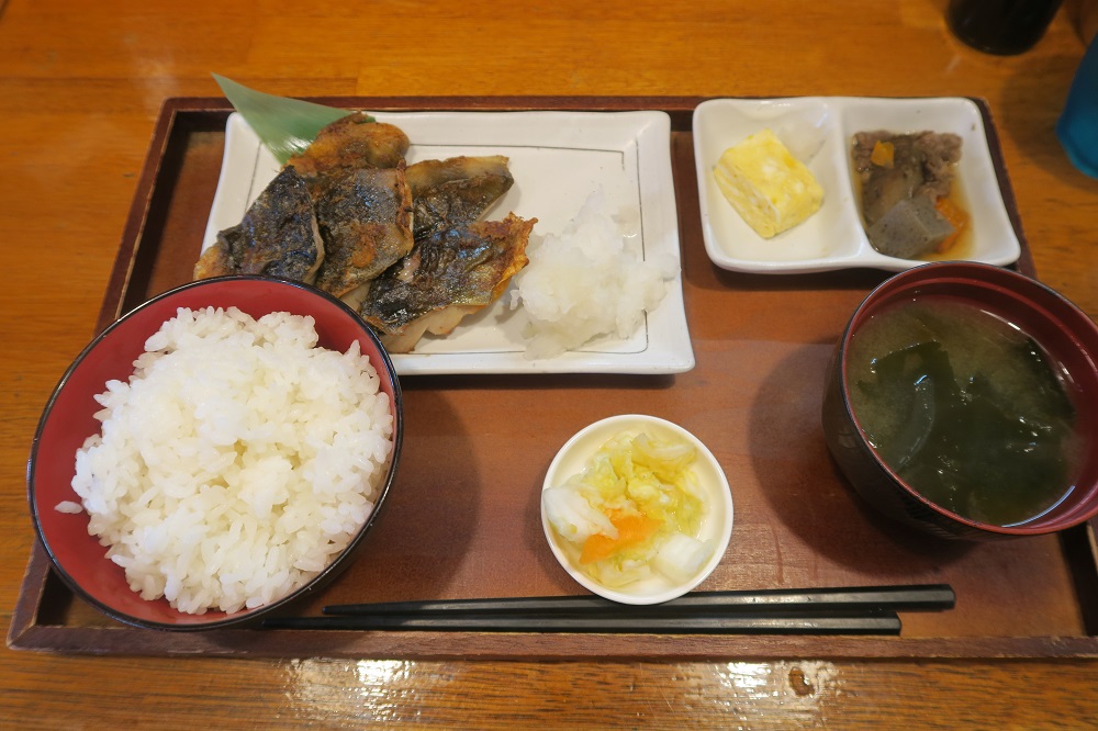 火加減に気を配っているので、ふっくらジューシーです。粗目の大根おろしと一緒に食べると口の中に旨味が広がります。副菜の出汁巻き卵も煮物もとても丁寧に作られていて美味しいです。
