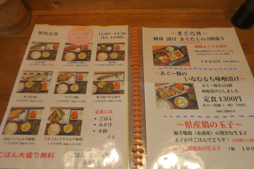 私はお店に入る前から「焼魚を食べよう!」と思っていましたが、焼魚もメニューが豊富で迷いました。ちょっと悩んでからオススメとあった「ほっけ定食」をお願いしました。