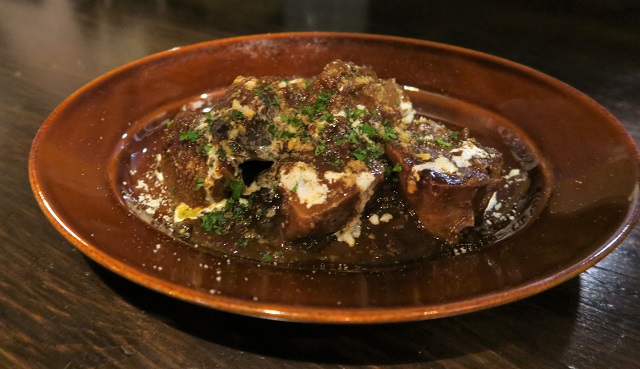 豚タンを赤ワインでじっくりと煮込んであります。深みのある味でニンマリします。ただもう少しアツアツだと嬉しかったです。
