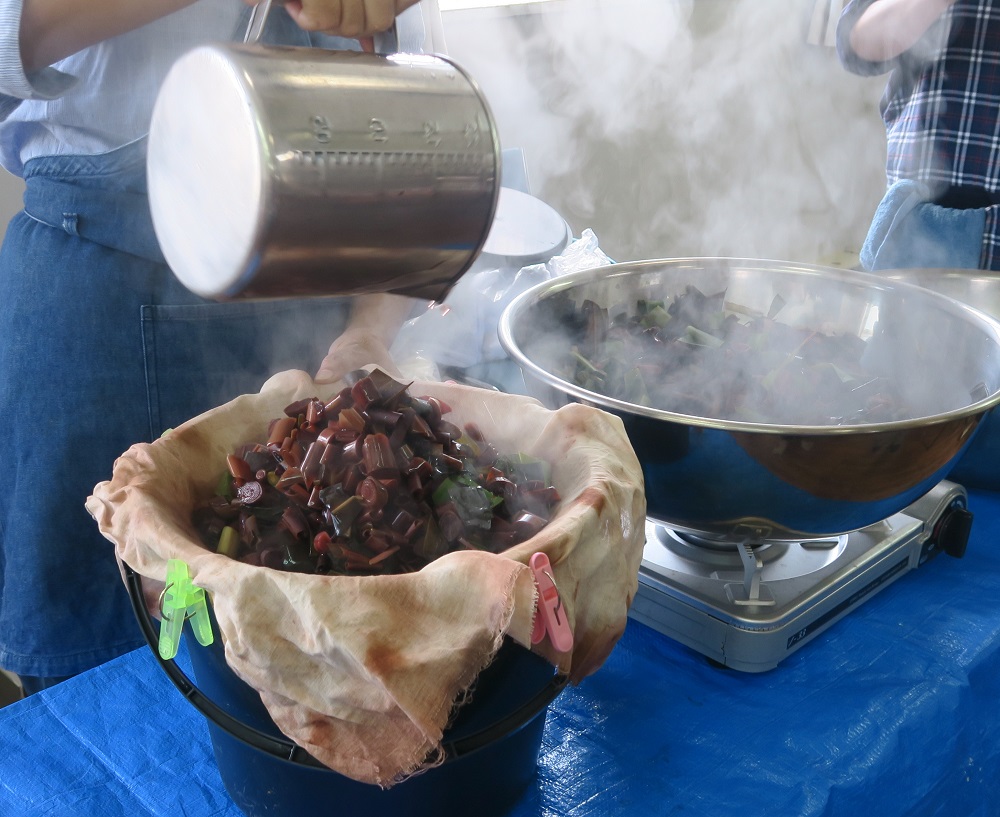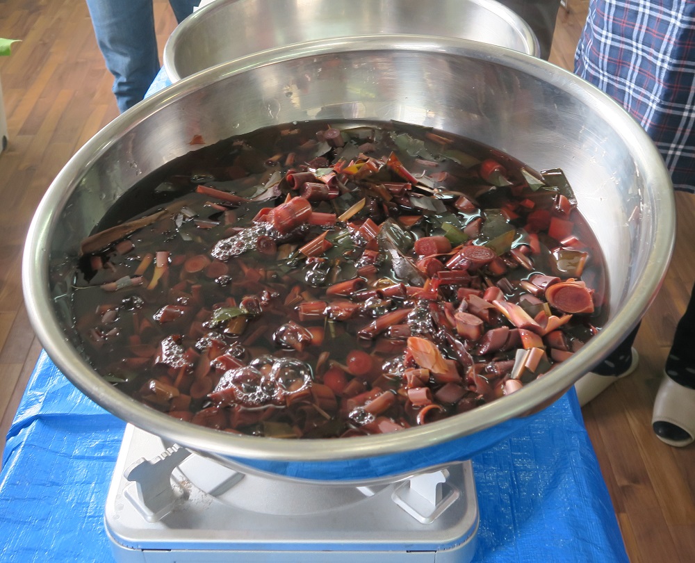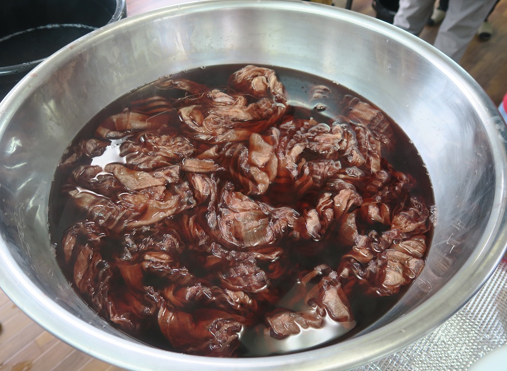 月桃は3番煎じも可能です。重曹と酢酸を加えて2番煎じまでは、先生が事前にご用意してくださいました。
