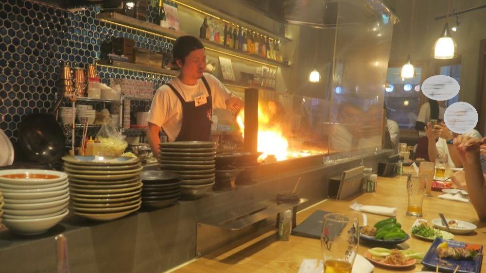 スタッフの合図でお客様が「ファイヤー!」と言うと火柱が上がります。活気と一体感があって楽しいです。