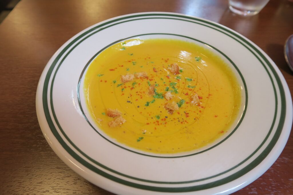 かぼちゃを丁寧に裏ごししてあるので、滑らかで濃厚です。大きめのクルトンが香ばしくておいしかったです。