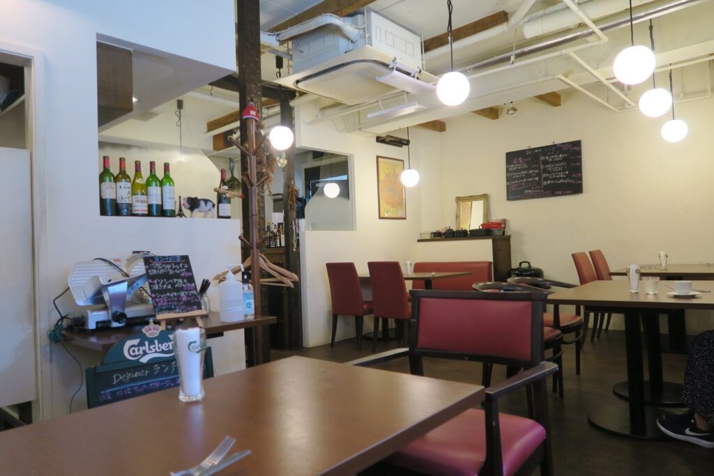 店内に入ると左右にテーブル席、左奥に厨房とカウンター席があります。席と席の間隔が広いのでゆったり過ごせそうです。