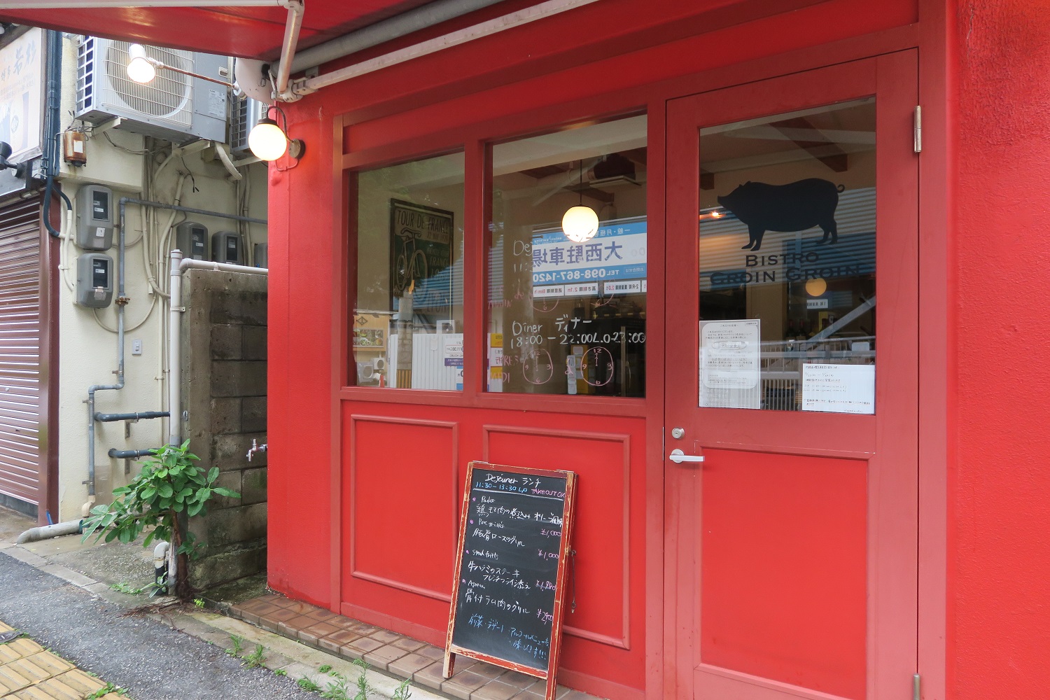 真っ赤な外観が目を引きます。店名はフランス語での豚の鳴き声「ブーブー」だそうです。