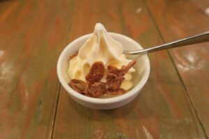 ソフトクリームを自分でマシンを操作して作るのは、大人でも楽しいですね。オレオやコンフレークなどもあります。