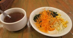 私はステーキ&ハンバーグを選び、サラダバーをセットにしました。(1,870円)