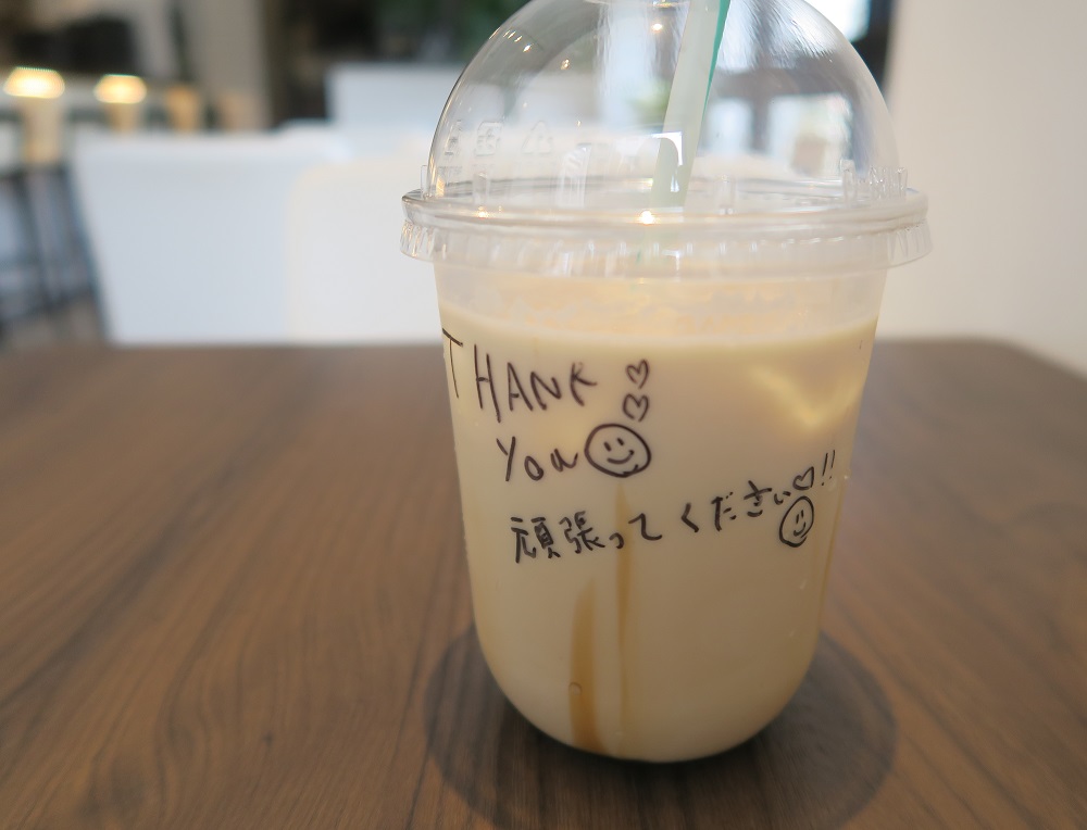 カップにはメッセージが書いてありました。嬉しいサービスですね。