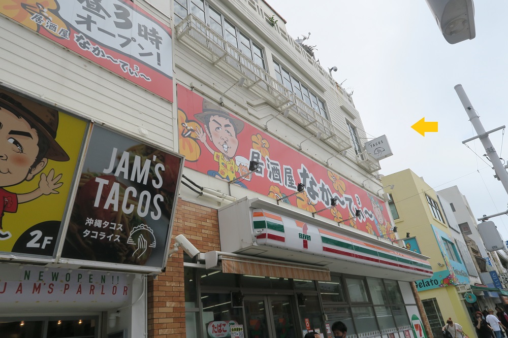 国際通りを牧志駅から県庁前方面に向かって進み、てんぶす那覇の手前、セブンイレブンの3Fです。