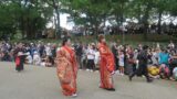首里城の芝生広場に移動しました。ステージが設置されていて、踊りなどが披露されます。