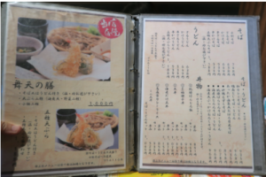 彦のメニュー。和食が充実しています