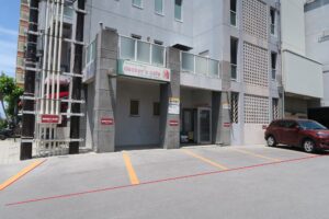 「Minsa Cafe(ミンサーカフェ)」の1階に駐車場があります。便利ですね。