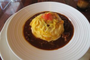 卵にはとろけるチーズもトッピングしてあるので、トロトロ感が倍増されているのが嬉しいです。ご飯はバターライスなので、ビーフシチューを絡めて食べても、しつこくならないところも良いですね。