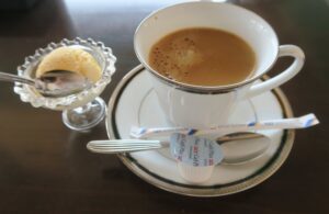 デザートのチーズアイスとホットコーヒーもセットになっています。自家製のチーズアイスは旨みたっぷりでなめらかです。