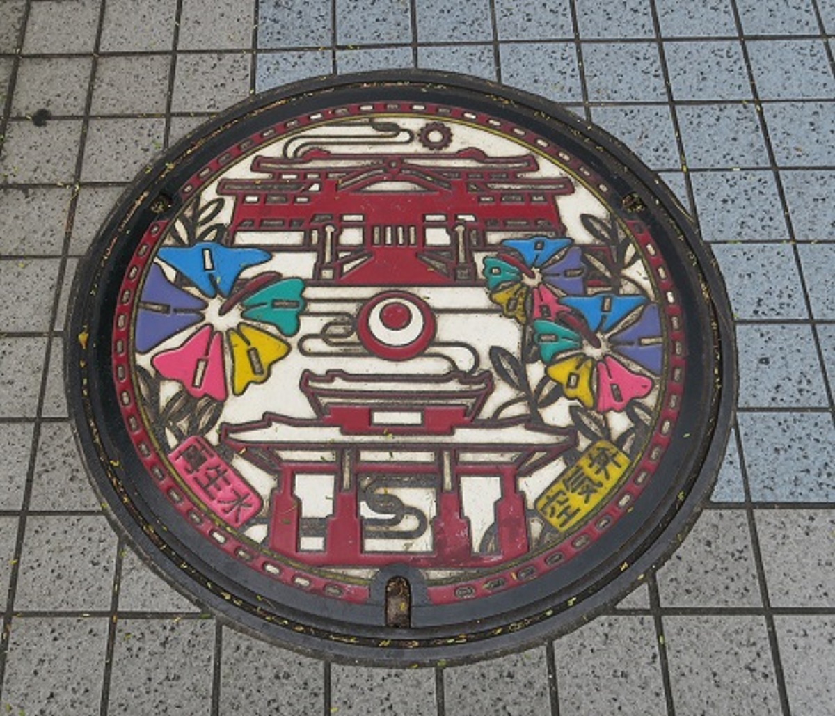 デザインマンホールの第1号はこちらで、よく見かけますね。