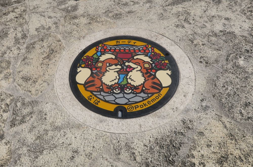 沖縄各地にポケモンマンホール(通称:ポケフタ)があって大人気なのですが、新しく首里城そばの龍潭のところに「ガーディー」のマンホールが設置されました。