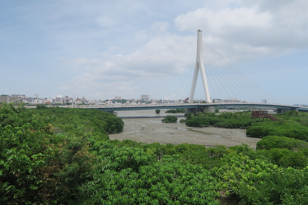 漫湖は、国場川の河口、奥武山公園から徒歩圏内にあります。とよみ大橋を車で通ると見えるマングローブの林のあるところです。