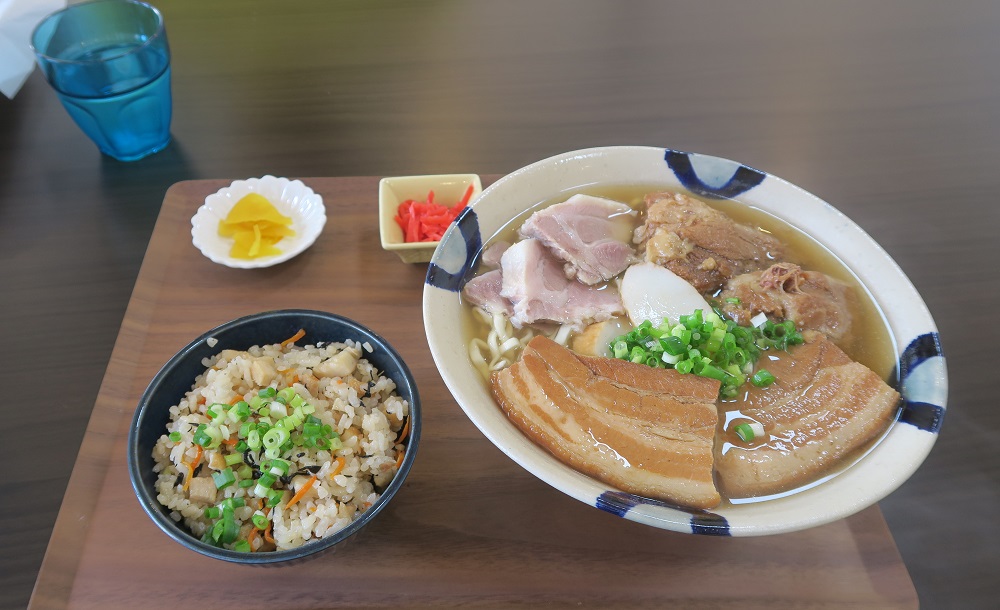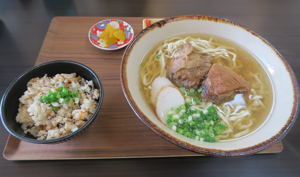 こちらは私が注文した「ソーキそば じゅーしーセット」です。