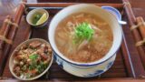 私は「ソーキレディスセット」(1,067円)を注文しました。レディスセットの麺は通常の半分になっています。この後たくさん歩く予定があったので、お腹がパンパンになるのを避けようと考えてのチョイスです。