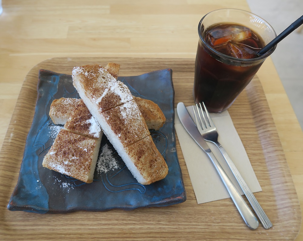 朝早い時間にアイスコーヒーとシナモントーストを食べることも出来ます。