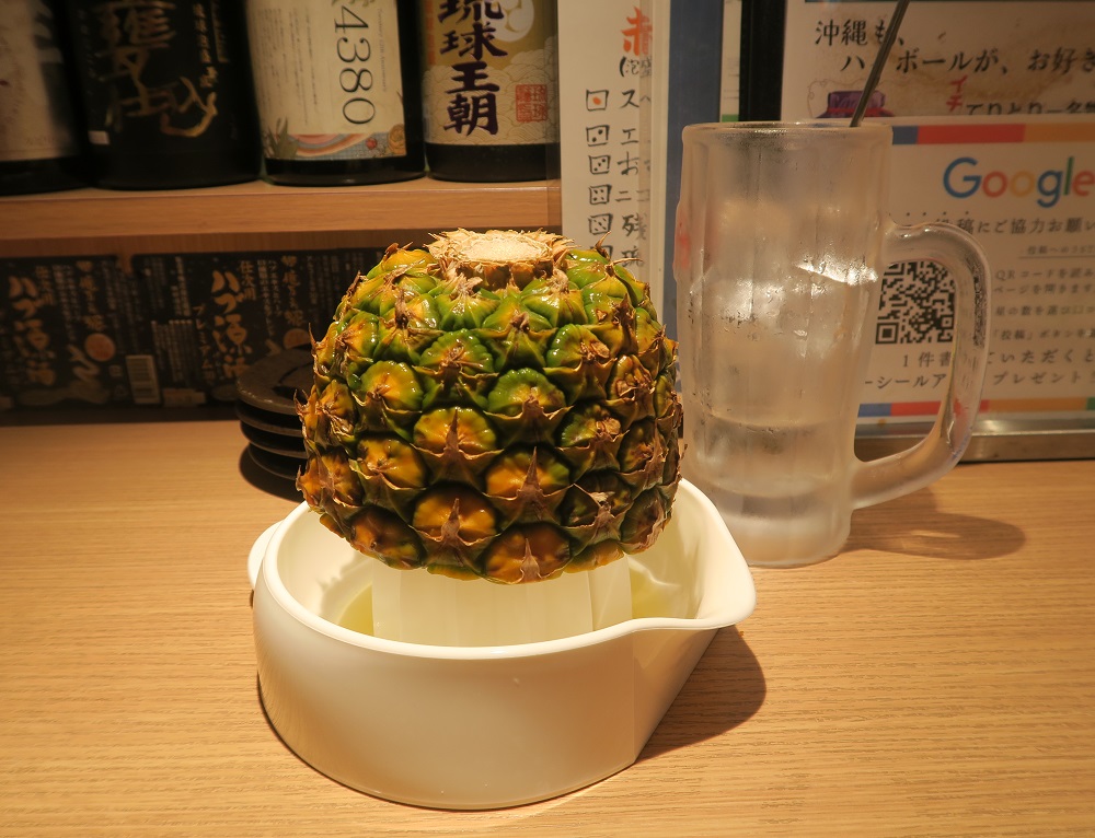生パインサワーは以前のままでした。生のパインを絞って飲みます。男性など握力の強い方が絞るとたくさんパイン果汁が取れるのですが、お酒の濃さが変わりますね。