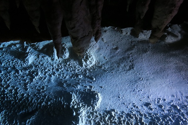 鍾乳洞の中が薄暗く、説明書きなどはほとんど読めませんでしたが、天井から滴る雫が鍾乳石を作り、下に落ちた雫が石筍(せきじゅん)になるまでは、気の遠くなるような年月がかかっているのです。