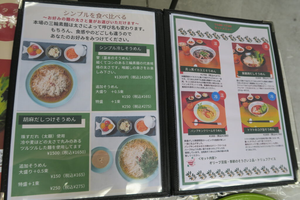 お店の区切りがなく、ひと続きなので、オリーブオイルも購入できるしオリーブオイルを使ったそうめんメニューも食べられるお店に感じられます。