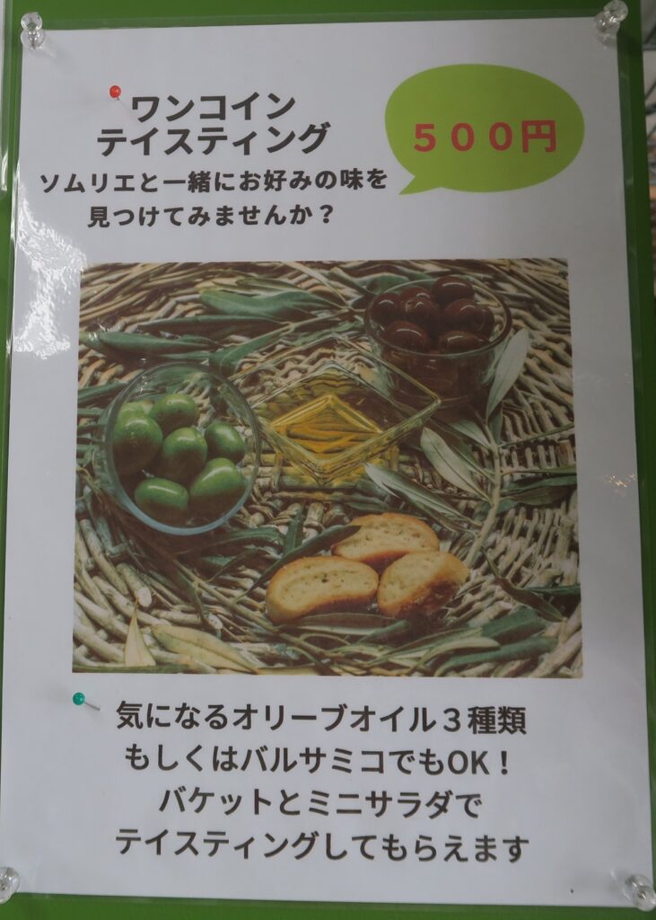 そこで、ワンコインで3種のオリーブオイルを試せる”ティスティングセット”で食べ比べてみてください。