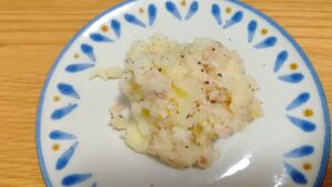 ツナやハム、ベーコンなどをポテトサラダの具にします。オリーブオイルをたっぷりかけると大人のポテトサラダになります。お酒のおつまみにぴったりです。