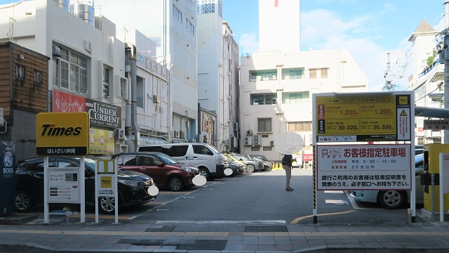 車で移動すると悩ましいのが駐車場で、特に国際通り周辺は細い道や一方通行が多いので、行き当たりばったりで駐車場を探しても見つからなかったり、迷ってしまうこともあります。