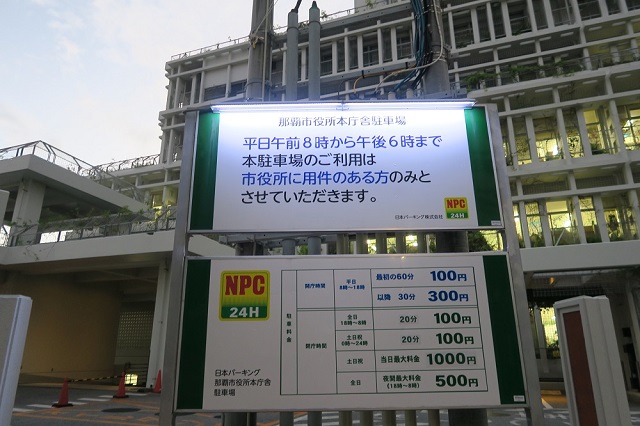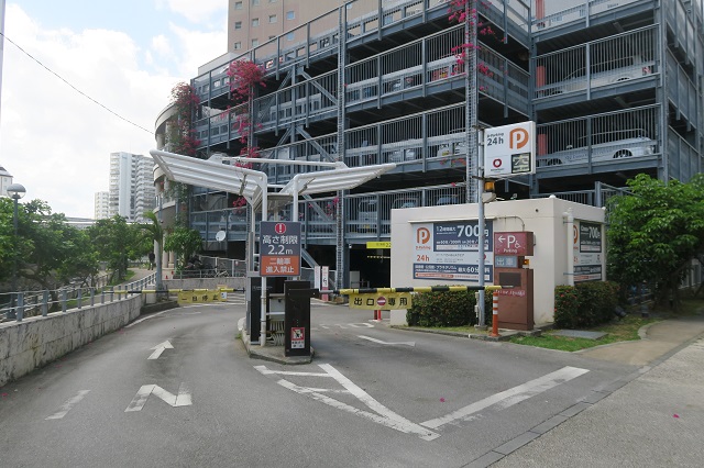 国際通りの端、イタリアンの「CROSS47」の隣にあります。日曜日でもトランジットモールの対象外なので、車の出し入れが可能です。90分300円って、安いですね。以前よりも駐車している車が増えたように思います。