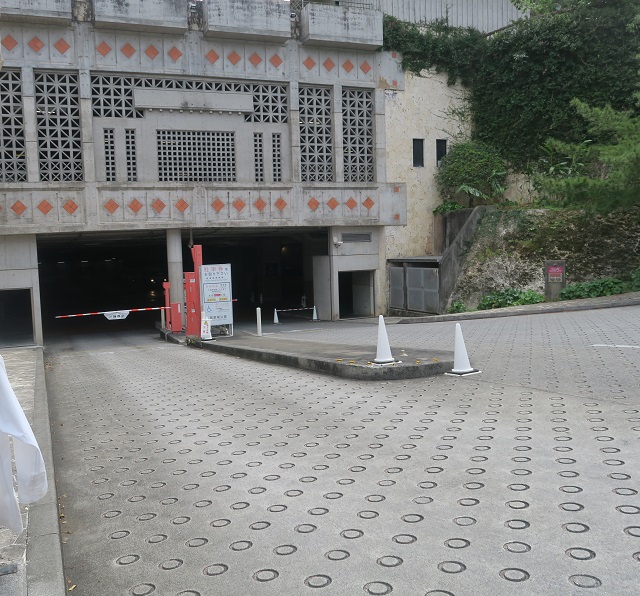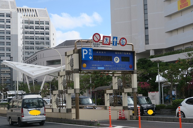「てんぶす那覇」に併設されている地下駐車場です。駐車場の出入り口が国際通り側ではなく脇道に面しているので、日曜日でもトランジットモールの対象とはならず車の出し入れができます。
