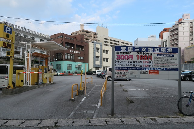 県庁前から安里方面に進んで、左折で進入できる駐車場を紹介します。