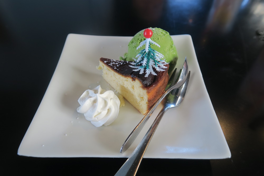 メニューには載っていませんが、スタッフさんから案内していただいたのでお願いしました。チーズの風味が満載のチーズケーキでおいしいです。添えられた抹茶アイスがほろ苦くていいですね。