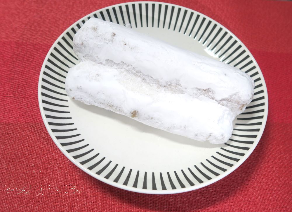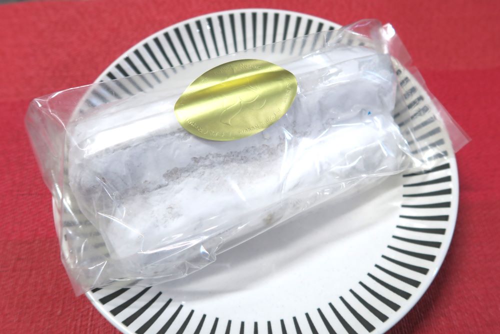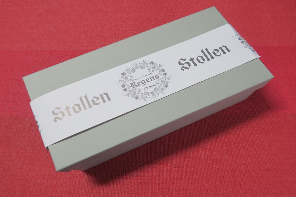 「レーゲンス」のシュトーレンです。表面には真っ白になるほど粉砂糖がたっぷりかかっています。砂糖をたっぷり使うことで日持ちがするのだと思います。その見た目が白いおくるみに包まれたキリストをイメージしているとも言われているそうです。