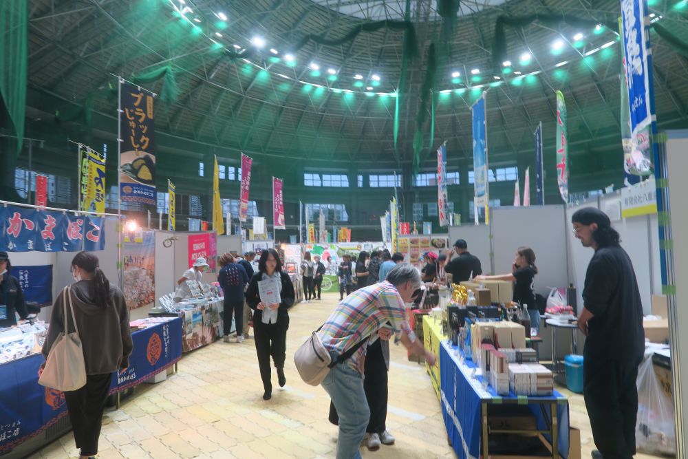 「離島フェア」の会場は「奥武山公園」の中の「沖縄セルラーパーク那覇」です。屋根のある円形のドームの中なので、雨にも風にも左右されないのがいいですね。